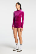 Culottes vita alta in velluto liscio elasticizzato, comoda e avvolgente è perfetta da sola o per giochi di sovrapposizione con i leggings o tuta intera indossata arricciandola in vita o alle cosce per donarle un tocco di pura originalità.