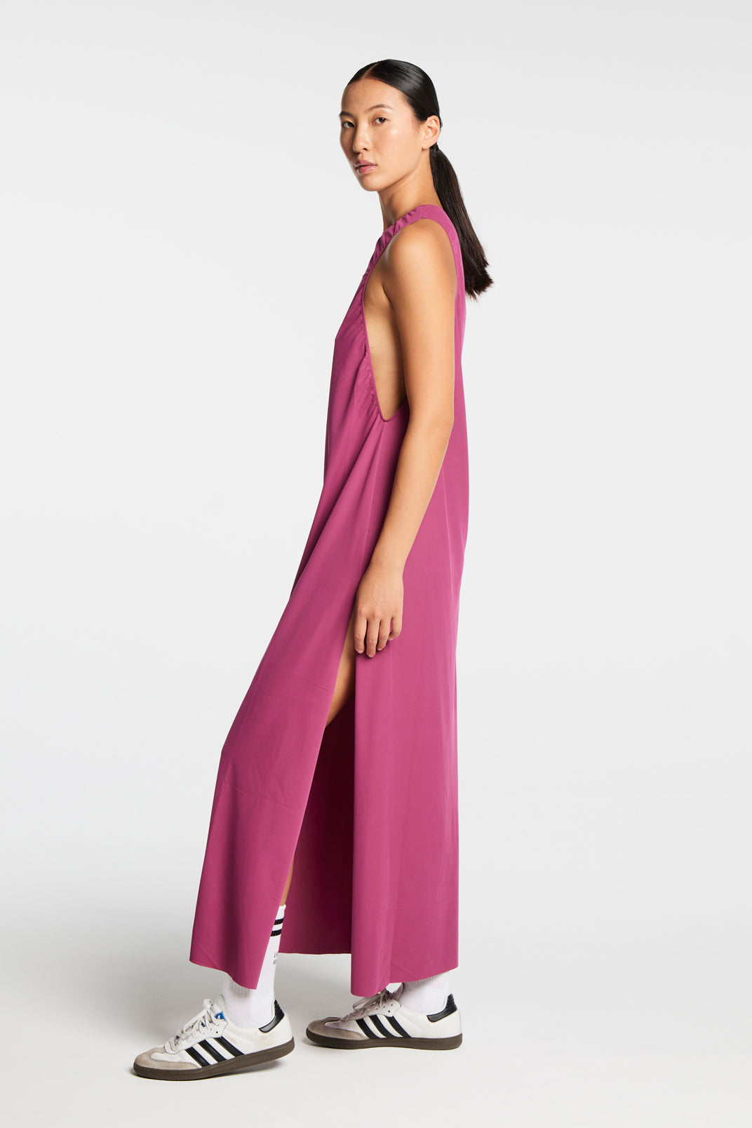 Abito in jersey con spacchi laterali e ampie aperture al corpo. Ideale per l'outdoor, il mare oppure da coordinare con t-shirt. Molto interessante anche l'abbinamento ad un tacco alto ed accessori per un'outfit da serata.