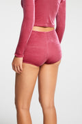 Culottes vita alta in velluto liscio elasticizzato, comoda e avvolgente è perfetta da sola o per giochi di sovrapposizione con i leggings o tuta intera indossata arricciandola in vita o alle cosce per donarle un tocco di pura originalità.