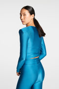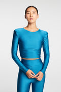 Top strutturato in pregiata lycra con ampie spalline che rendono la sua silohuette squadrata e dall'attitude vintage. Per un effetto superfashion in palestra e per sorprendere tutti abbinandolo ad un outfit serale o elegante.